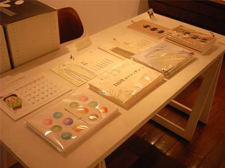 カレンダー販売コーナー。(手前から金澤、北村、米津)